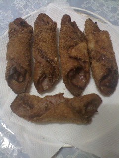 - Deep fry until outer is golden brown. I cooked two hamrons at a time.